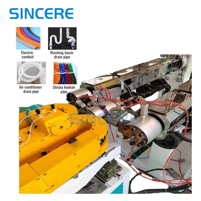 Our single-wall corrugated pipe extrusion line processes PVC, PE, or PP raw materials to produce pipes with excellent corrosion resistance, abrasion resistance, high strength, and flexibility. These pipes are widely used for cable protection, washing machine outlet tubes, vacuum cleaner ventilation pipes, and various industrial applications.single wall corrugated pipe is made of PVC,PP,PE,EVA,which has the characteristics of corrosion resistance,abrasion resistance,high strength, good flexibility,etc. It has been widely used in cable protection,washing machine outlet pipe, vacuum cleaner ventilation pipe and so on. Our single-wall corrugated pipe line has the advantages of accurate molding, reliable performance, fast speed,high efficiency,easy operation.
